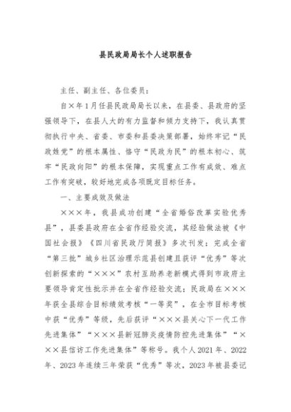 / 【七哥公文】2024年:县民政局局长个人述职报告+更多免费公文+VX:QiGeGongWen2024
