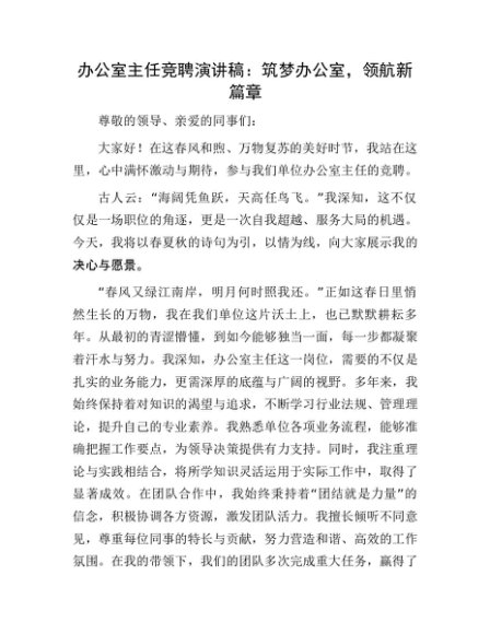 / 【七哥公文】2024年:办公室主任竞聘演讲稿:筑梦办公室,领航新篇章+更多免费公文+VX:QiGeGongWen2024