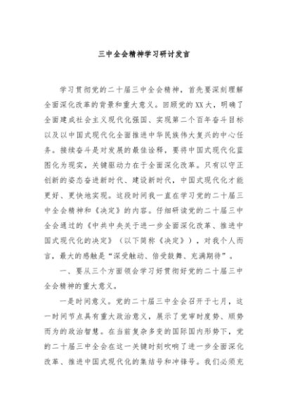 【七哥公文】2024年:三中全会精神学习研讨发言 (1)+更多免费公文+VX:QiGeGongWen2024