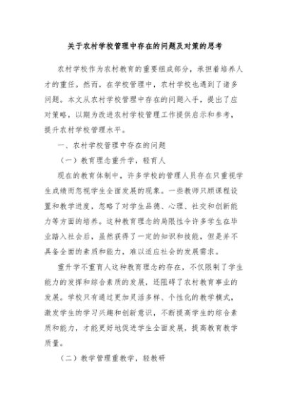 【七哥公文】2024年:关于农村学校管理中存在的问题及对策的思考+更多免费公文+VX:QiGeGongWen2024