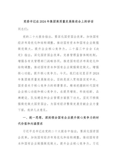 / 【七哥公文】2024年:党委书记在2024年集团高质量发展推进会上的讲话+更多免费公文+VX:QiGeGongWen2024
