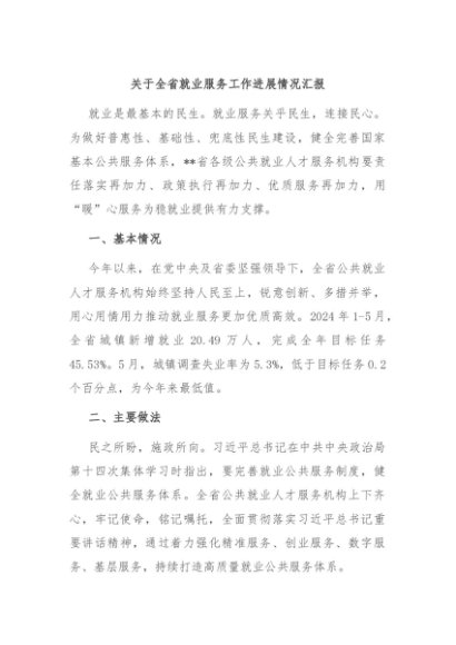 / 【七哥公文】2024年:关于全省就业服务工作进展情况汇报+更多免费公文+VX:QiGeGongWen2024