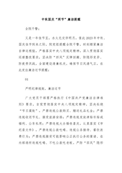 / 【七哥公文】2024年:中秋国庆“两节”廉洁提醒+更多免费公文+VX:QiGeGongWen2024