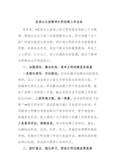 / 【七哥公文】2024年:县委办公室精神文明创建工作总结+更多免费公文+VX:QiGeGongWen2024