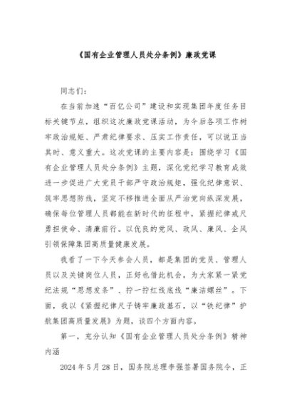 / 【七哥公文】2024年:《国有企业管理人员处分条例》廉政党课+更多免费公文+VX:QiGeGongWen2024