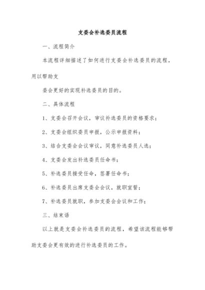 / 【七哥公文】2024年:支委会补选委员流程 (1)+更多免费公文+VX:QiGeGongWen2024