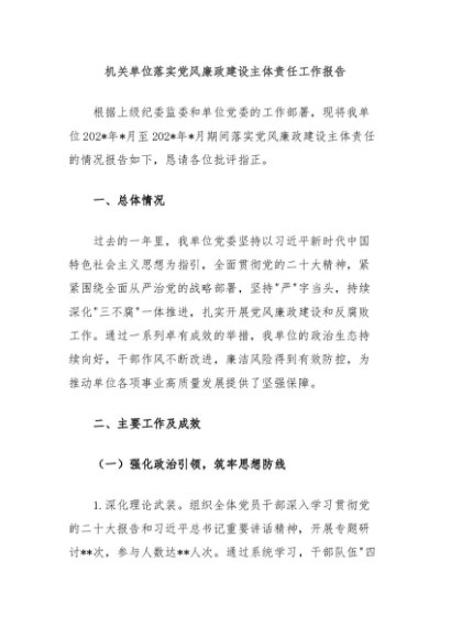 / 【七哥公文】2024年:机关单位落实党风廉政建设主体责任工作报告+更多免费公文+VX:QiGeGongWen2024