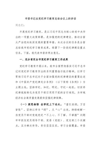 / 【七哥公文】2024年:市委书记在党纪学习教育总结会议上的讲话+更多免费公文+VX:QiGeGongWen2024