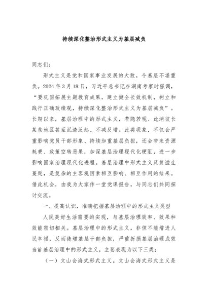 【七哥公文】2024年:持续深化整治形式主义为基层减负+更多免费公文+VX:QiGeGongWen2024