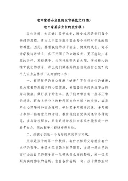 / 【七哥公文】2024年:(3篇)初中家委会主任的发言稿范文+更多免费公文+VX:QiGeGongWen2024