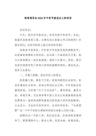 / 【七哥公文】2024年:街道领导在2024年中秋节座谈会上的讲话+更多免费公文+VX:QiGeGongWen2024