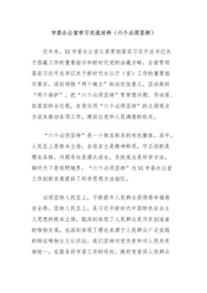 / 【七哥公文】2024年:市委办公室学习交流材料(六个必须坚持)+更多免费公文+VX:QiGeGongWen2024