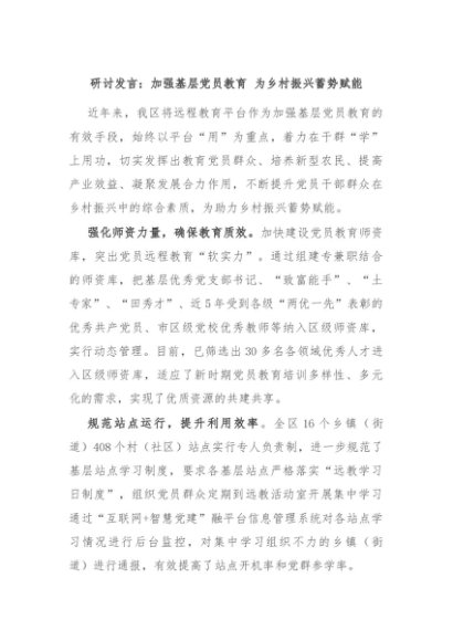 / 【七哥公文】2024年:研讨发言:加强基层党员教育 为乡村振兴蓄势赋能+更多免费公文+VX:QiGeGongWen2024