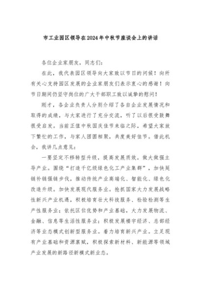 / 【七哥公文】2024年:市工业园区领导在2024年中秋节座谈会上的讲话+更多免费公文+VX:QiGeGongWen2024