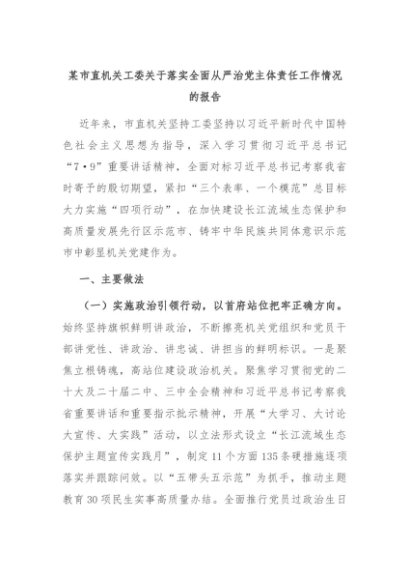 【七哥公文】2024年:某市直机关工委关于落实全面从严治党主体责任工作情况的报告+更多免费公文+VX:QiGeGongWen2024