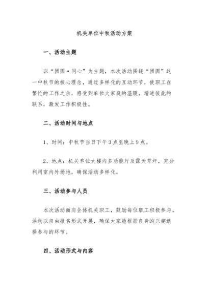 【七哥公文】2024年:机关单位中秋活动方案+更多免费公文+VX:QiGeGongWen2024