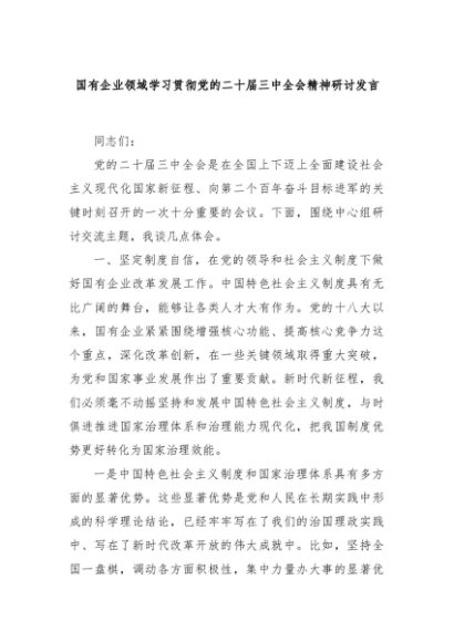 【七哥公文】2024年:国有企业领域学习贯彻党的二十届三中全会精神研讨发言+更多免费公文+VX:QiGeGongWen2024