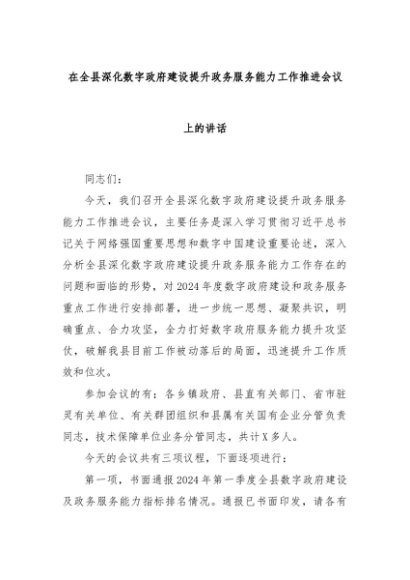 【七哥公文】2024年:在全县深化数字政府建设提升政务服务能力工作推进会议上的讲话+更多免费公文+VX:QiGeGongWen2024
