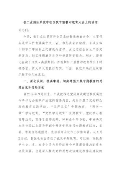 / 【七哥公文】2024年:在工业园区系统中秋国庆节前警示教育大会上的讲话+更多免费公文+VX:QiGeGongWen2024