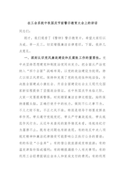 / 【七哥公文】2024年:在工会系统中秋国庆节前警示教育大会上的讲话+更多免费公文+VX:QiGeGongWen2024