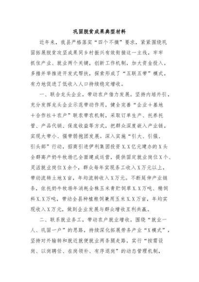 / 【七哥公文】2024年:巩固脱贫成果典型材料+更多免费公文+VX:QiGeGongWen2024