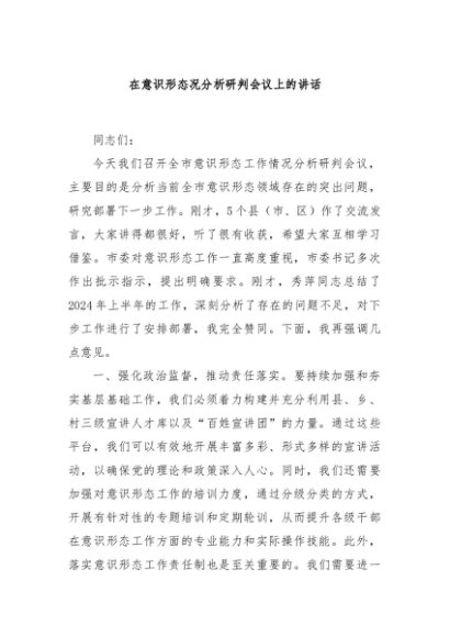 / 【七哥公文】2024年:在意识形态况分析研判会议上的讲话+更多免费公文+VX:QiGeGongWen2024