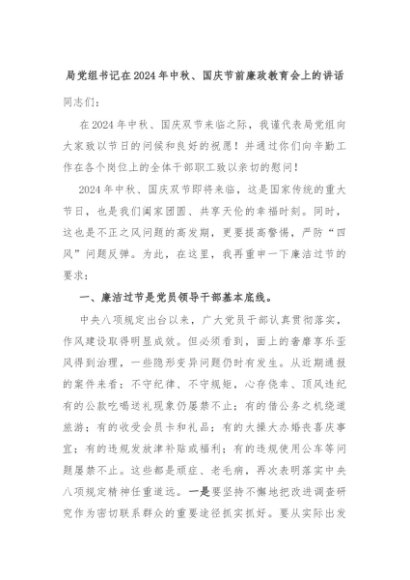 【七哥公文】2024年:局党组书记在2024年中秋、国庆节前廉政教育会上的讲话+更多免费公文+VX:QiGeGongWen2024