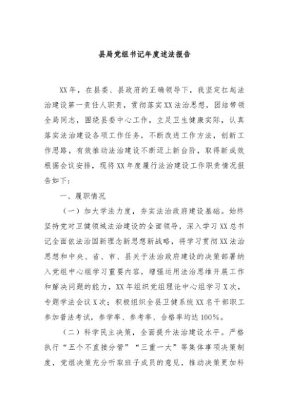 / 【七哥公文】2024年:县局党组书记年度述法报告+更多免费公文+VX:QiGeGongWen2024