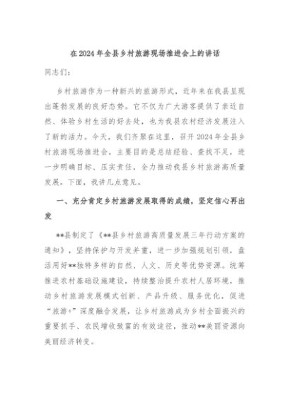 / 【七哥公文】2024年:在2024年全县乡村旅游现场推进会上的讲话+更多免费公文+VX:QiGeGongWen2024