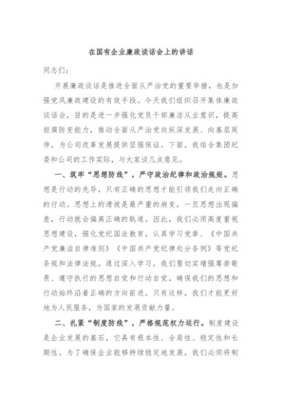 / 【七哥公文】2024年:在国有企业廉政谈话会上的讲话+更多免费公文+VX:QiGeGongWen2024