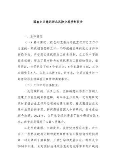 / 【七哥公文】2024年:国有企业意识形态风险分析研判报告+更多免费公文+VX:QiGeGongWen2024
