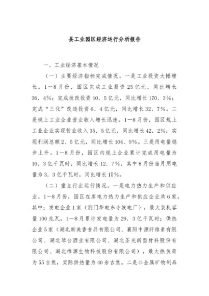/ 【七哥公文】2024年:县工业园区经济运行分析报告+更多免费公文+VX:QiGeGongWen2024