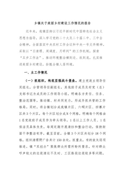 / 【七哥公文】2024年:乡镇关于美丽乡村建设工作情况的报告+更多免费公文+VX:QiGeGongWen2024