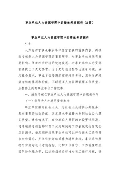/ 【七哥公文】2024年:(2篇)事业单位人力资源管理中的绩效考核探析+更多免费公文+VX:QiGeGongWen2024