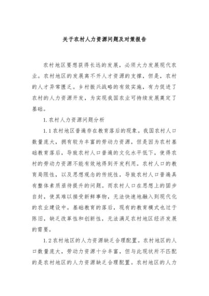 【七哥公文】2024年:关于农村人力资源问题及对策报告+更多免费公文+VX:QiGeGongWen2024