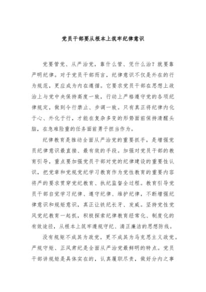 【七哥公文】2024年:党员干部要从根本上筑牢纪律意识+更多免费公文+VX:QiGeGongWen2024