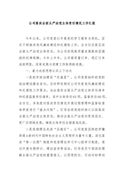 / 【七哥公文】2024年:公司落实全面从严治党主体责任情况工作汇报+更多免费公文+VX:QiGeGongWen2024