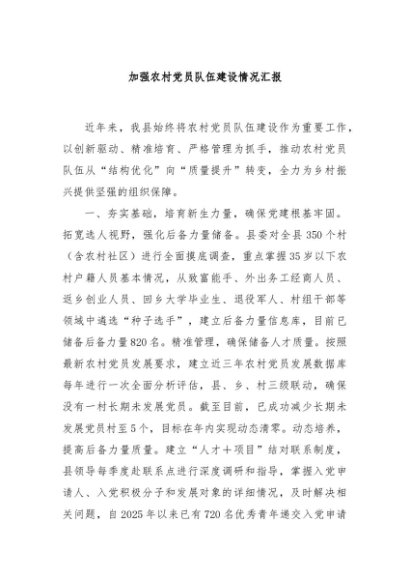 / 【七哥公文】2024年:加强农村党员队伍建设情况汇报+更多免费公文+VX:QiGeGongWen2024