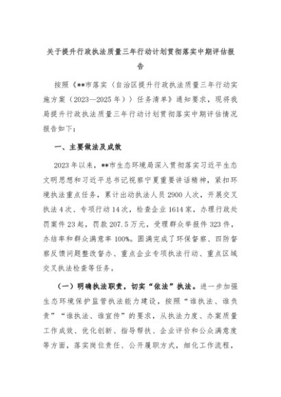【七哥公文】2024年:关于提升行政执法质量三年行动计划贯彻落实中期评估报告+更多免费公文+VX:QiGeGongWen2024
