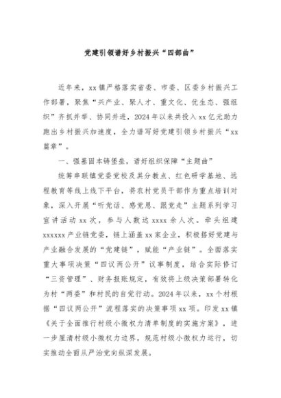 / 【七哥公文】2024年:党建引领谱好乡村振兴“四部曲”+更多免费公文+VX:QiGeGongWen2024