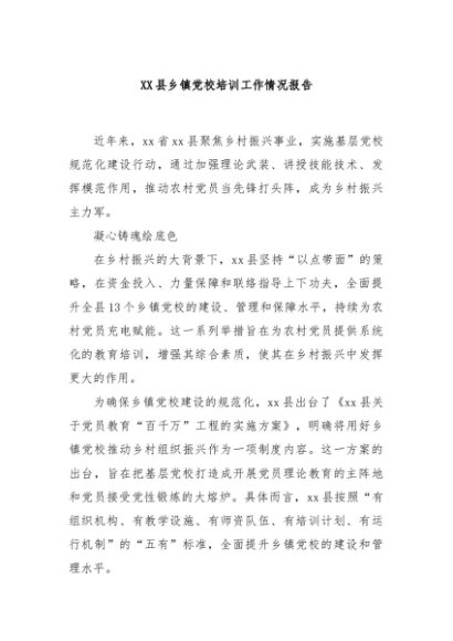 【七哥公文】2024年:XX县乡镇党校培训工作情况报告+更多免费公文+VX:QiGeGongWen2024