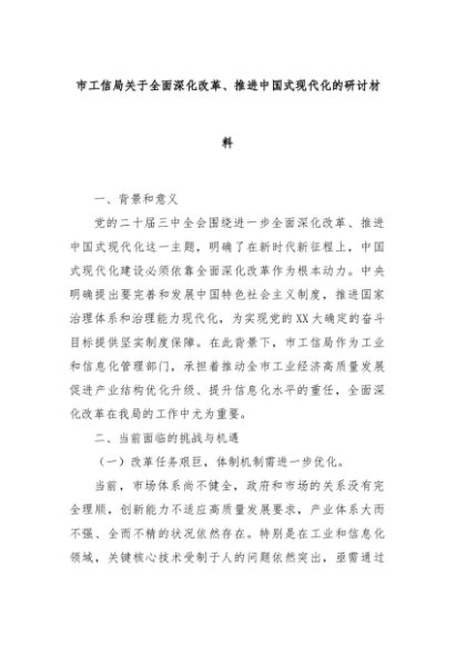 【七哥公文】2024年:市工信局关于全面深化改革、推进中国式现代化的研讨材料+更多免费公文+VX:QiGeGongWen2024