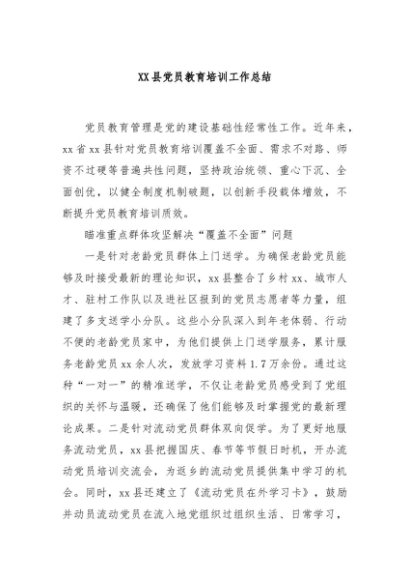 【七哥公文】2024年:XX县党员教育培训工作总结+更多免费公文+VX:QiGeGongWen2024