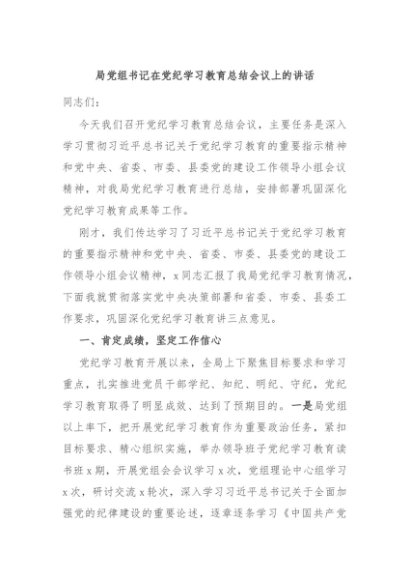 / 【七哥公文】2024年:局党组书记在党纪学习教育总结会议上的讲话+更多免费公文+VX:QiGeGongWen2024