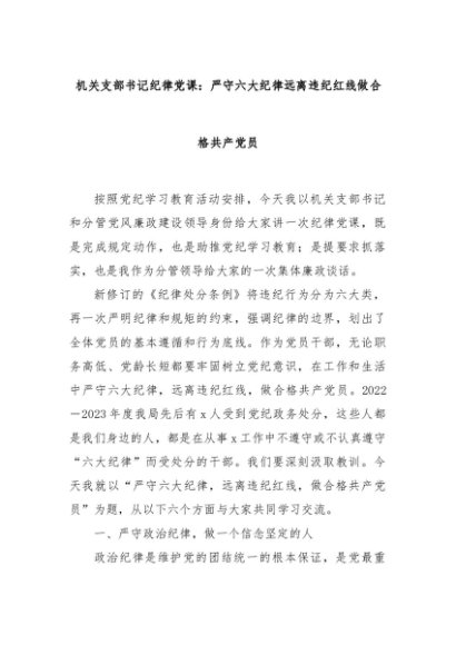 【七哥公文】2024年:机关支部书记纪律党课:严守六大纪律远离违纪红线做合格共产党员+更多免费公文+VX:QiGeGongWen2024