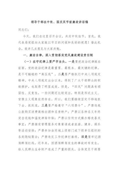/ 【七哥公文】2024年:领导干部在中秋、国庆双节前廉政讲话稿+更多免费公文+VX:QiGeGongWen2024