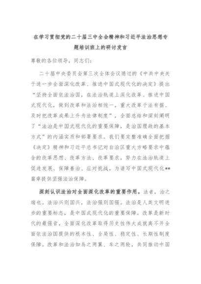【七哥公文】2024年:在学习贯彻党的二十届三中全会精神和习近平法治思想专题培训班上的研讨发言+更多免费公文+VX:QiGeGongWen2024
