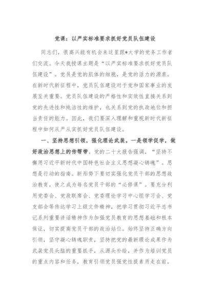 / 【七哥公文】2024年:党课:以严实标准要求抓好党员队伍建设+更多免费公文+VX:QiGeGongWen2024