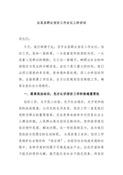 / 【七哥公文】2024年:在某县群众信访工作会议上的讲话+更多免费公文+VX:QiGeGongWen2024