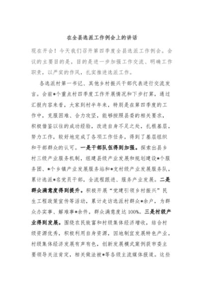 / 【七哥公文】2024年:在全县选派工作例会上的讲话+更多免费公文+VX:QiGeGongWen2024